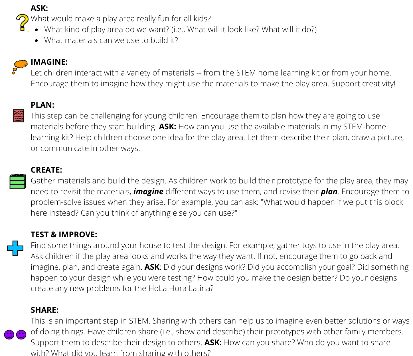 You and your child can also use the design process at home to solve challenging problems! Doing so will show your child that everyone can do STEM!